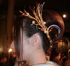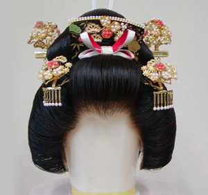 日本の花嫁のかつらの代表文金高島田、おすべらかし他、色々なスタイルに対応できるかつら。