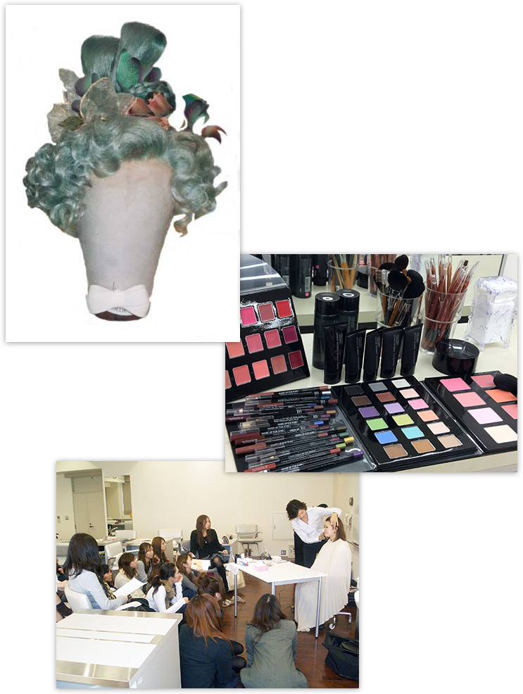 和装、洋装、研修会等のヘアーメイク講習、専門学校、大学への講師派遣。