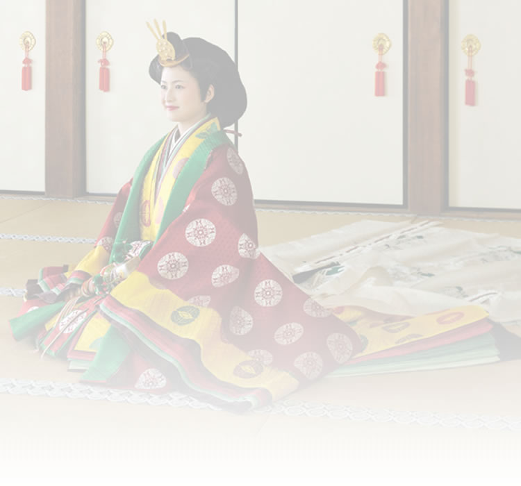 十二単婚礼衣装・かつらレンタル、メイク、着付け一式請け賜ります。お気軽にお問合せください。