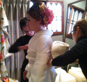 ブライダル(振袖、留袖、打掛、十二単等)、映像、写真、イベント等の着物着付け。